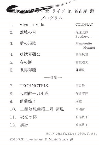 昨日は、二胡アンサンブル翠の名古屋ライヴでした。