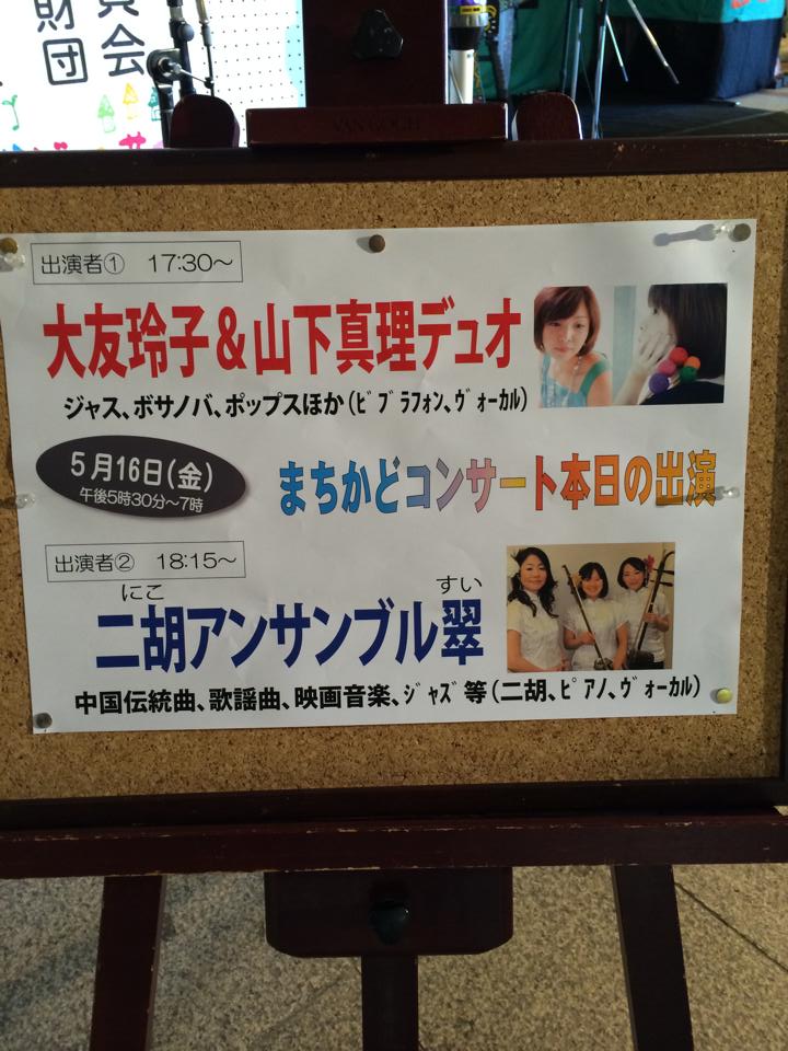 2014/05/23 Category : 二胡 四日市まちかどコンサート 終了~ あっと言う間に一週間経ってしまいましたが、四日市駅前で開かれたまちかどコンサート、無事終了致しました~ 三重県に転居してはじめての地元での演奏。 とってもはりきっていました! 本番の日まで、ずっとわくわくしていました。 当日は通路をふさぐほどの立ち見のお客様で、とってもありがたく、幸せな気持ちで演奏させていただけました。 それも、遠方からかけつけてくれた翠のメンバーのおかげ! 北名古屋から佳子ちゃん(新婚さん)、大阪からはピアノを運んできてくれた鞆さん。 こちらに来てはじめてできた友達も、たくさん駆けつけてくれました。 遠く大阪の友達、三重の二胡友さんも。 こんなにたくさんの人に支えられて二胡が弾けてるんだなあと改めて胸に刻んだ一日でした。 楽しかった~ 四日市の方々に少しでも何か持って帰っていただけたらうれしいです。 ファーストステージは、ヴォーカルの大友玲子さんとビブラフォンの山下真理さんのデュオでした。 珍しい組み合わせですよね! 初めてビブラフォンを間近で(残念ながら舞台裏で控えていたので、正面から見られなかったのですが)聴かせていただきましたが優しくて可愛らしい音色でうっとりでした。 力強い大友さんのヴォーカルとの組み合わせが、おもしろかったです。 私達はアンコールを含め計7曲を演奏しました。 2曲ほど歌わせていただきました! 涙そうそう バッタとニワトリのおじさん Smile(Vo.出會) エトピリカ~情熱大陸 燕になりたい(Vo.出會) 賽馬 アンコール 花 当日の演奏の模様を、アップしていただいておりますのでよろしければ見てやってくださーい。 四日市まちかどコンサート 二胡アンサンブル 翠 お越しいただきました皆様、そしてスタッフの皆様、本当にありがとうございました! PR http://deaimiyuki.ko-me.com/%E4%BA%8C%E8%83%A1/%E5%9B%9B%E6%97%A5%E5%B8%82%E3%81%BE%E3%81%A1%E3%81%8B%E3%81%A9%E3%82%B3%E3%83%B3%E3%82%B5%E3%83%BC%E3%83%88%E3%80%80%E7%B5%82%E4%BA%86%EF%BD%9E四日市まちかどコンサート 終了~ Comment0 Comment Comment Form お名前name タイトルtitle メールアドレスmail address URLurl コメントcomment パスワードpassword