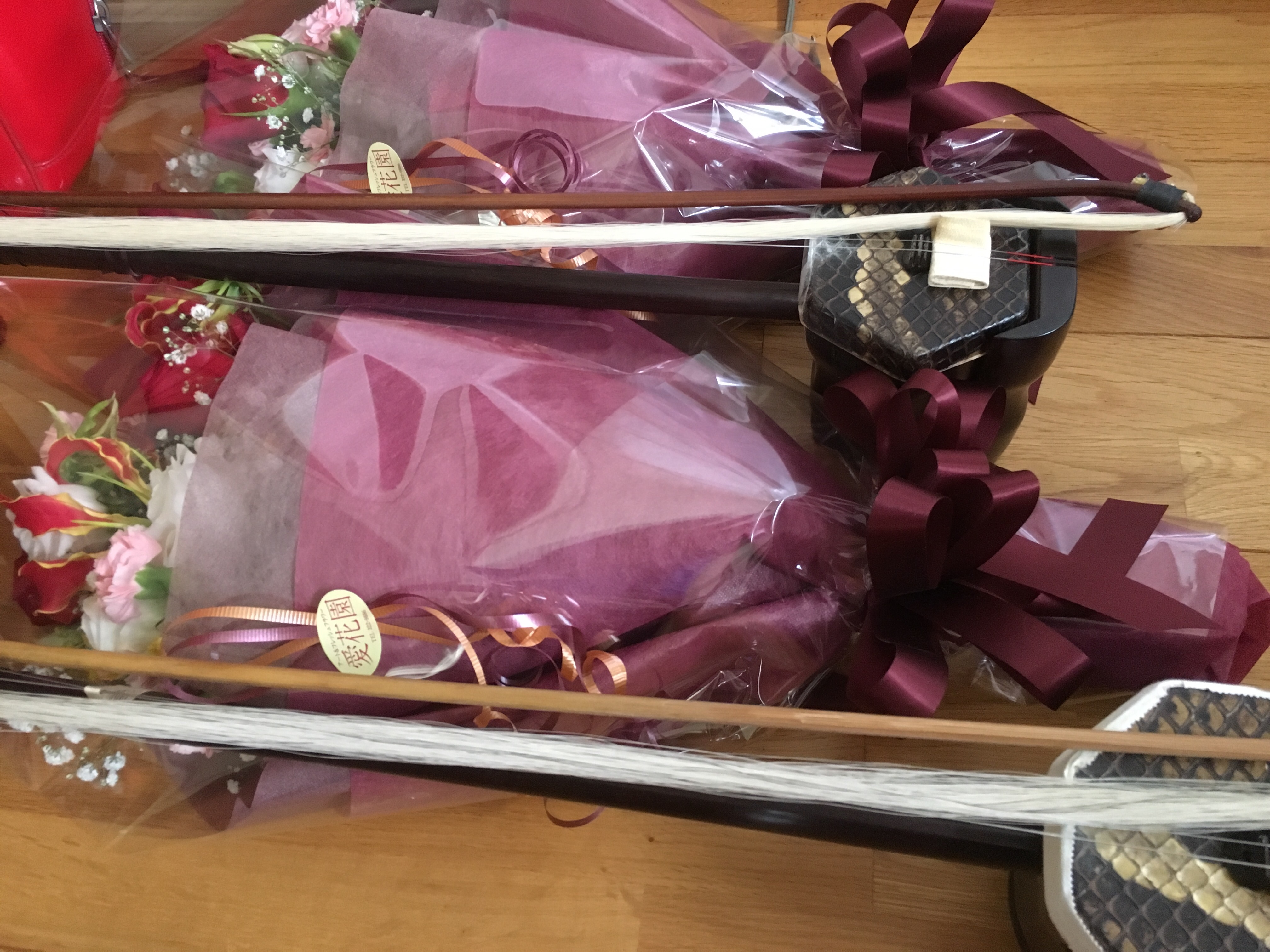 2016/09/21 Category : 二胡 敬老の会 おめでたいです。ありがとうございました。 /9月はシルバーウィークというものができるようになりましたね。 暦というものも歴史とともに変化してゆくのですね。私が幼少期はそんなのありませんでした。 そんなわけで、9月は私にとって敬老の月でもありました。 9月に限らずそういった気持ちはいつも持っていたいですが、 18日(日)は地元四日市川島町で、19日(祝月)は北名古屋で。 それぞれ演奏させていただきました。 それぞれ地域色があり、お集まりいただいている場所や人数、催しの内容には違いがあれど共通して感じることは「主催されている方のお気持ちがこもったあたたかい会だなあ」ということ。 そして集まってくださった方々が皆さんほがらかな表情だったこと。 私の母もとうとう還暦を迎えました。 私の祖父母、父母とそう変わらない年代の皆さんにどうすれば楽しんでいただけるのか、そればかりを考えていたこの数カ月でした。 まずは18日(日)。地元四日市市川島長での敬老会演奏です。 7/31の名古屋ライヴでもこころよく友情出演を引き受けてくださった柘植さんとの演奏。 「一緒に歌って、叫んで、盛り上がろう!!」 をコンセプトに、手拍子にコール&レスポンス、一緒に歌っていただくプログラムを中心に構成しました。新曲の楽譜もたくさん書き、歌詞カードも用意しました。 そのかいあってかあいにくの雨天にも関わらず会場いっぱいの方がいらしてくださいましたよ。 柘植さん、あいかわらずの無茶ぶりをみごと打 ち返してくださる演奏をありがとうございました。 美空ひばりさんの「お祭りマンボ」で皆さんの「ワッショイワッショイ!!」がそろった時は本当に準備してよかったー!と思いましたよ~ そして「ソーレソレソレお祭りだーーーい!!」のところ。 二胡よりも立ちあがって皆さんと歌いたくなってしまいました。 終演後はたくさんの方に声をかけていただき、二胡の演奏活動を始めたきっかけを再確認させていただきました。 美しい花束もいただき、まことにありがとうございました! 柘植さんとの演奏の写真がありませぬ・・泣 もしもどなたかお持ちの方で、この記事を読んでくださる方がいらっしゃいましたらご一報くださいませー! 9/19(祝月)は、北名古屋の某敬老会の演奏。 7月のライヴ以来の翠の二人で。今回はゲストのピアノ伴奏の女性にも参加いただき、その方のご家族ぐるみで本当にお世話になった会でした。 これまた80名様以上の方にお越しいただき、久々の安田さんとのデュオをお届けしました。 「心にしみる音色だったわ・・」 終演後に、ご婦人にかけていただいた言葉がとてもうれしかったです。 初めて聴いていただいた方が大半のステージで、うれしいと同時に責任も感じるひとときでしたね。(二胡という楽器の、よくも悪くもファーストインプレッションになりますからね) それ以外にも自分自身の発表会もあったりした怒涛の連休でしたが、その模様はまた後ほど・・ ほっとしたのもつかの間、また新しい催しが目白押しです。 どこかでまた皆さんにお会いできるのを心待ちに・・ 季節の変わり目ですが、皆さん花粉症とか風邪とかに負けないで元気に秋をおむかえくださいね。 私はすでに花粉症に負けて目鼻グズグズでぶっさいくなことになっていますが、心を強く持って生きてゆきますでは! PR http://deaimiyuki.ko-me.com/%E4%BA%8C%E8%83%A1/%E6%95%AC%E8%80%81%E3%81%AE%E4%BC%9A%E3%80%80%E3%81%8A%E3%82%81%E3%81%A7%E3%81%9F%E3%81%84%E3%81%A7%E3%81%99%E3%80%82%E3%81%82%E3%82%8A%E3%81%8C%E3%81%A8%E3%81%86%E3%81%94%E3%81%96%E3%81%84%E3%81%BE%E3%81%97%E3%81%9F%E3%80%82敬老の会 おめでたいです。ありがとうございました。 Comment0 Comment Comment Form お名前name タイトルtitle メールアドレスmail address URLurl コメントcomment パスワードpassword