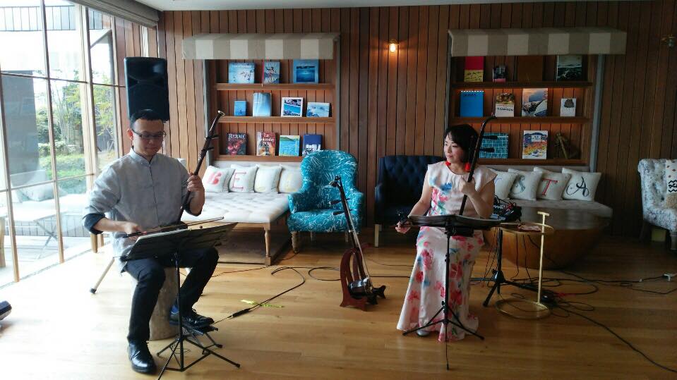 メンバーは、揚琴の嬉嬉(きき)さん、二胡の梅本ケンの三名。