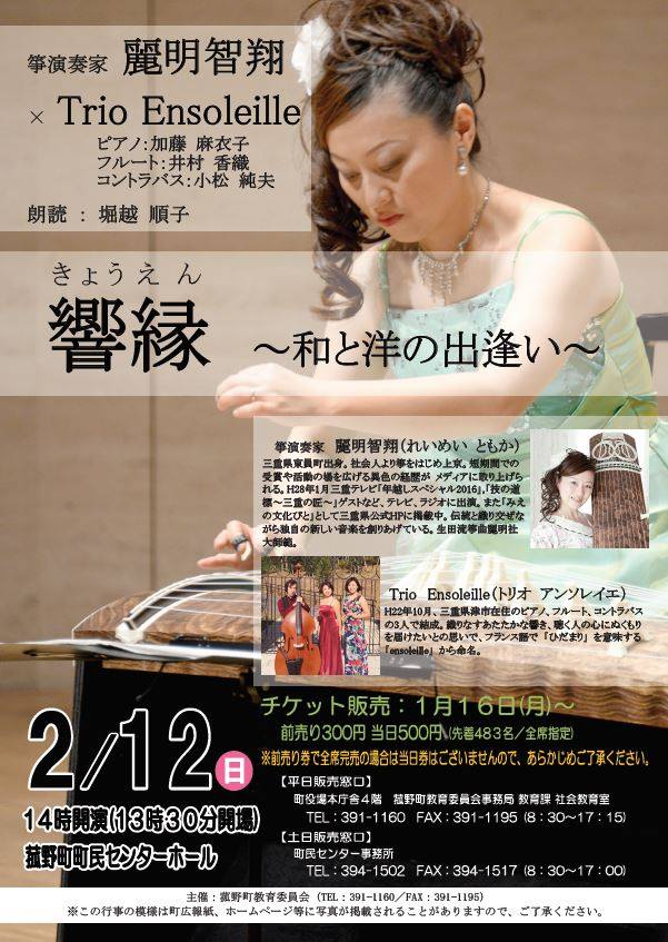 三重県を拠点に活躍されている箏演奏家の麗明智翔さんのコンサートに、スタッフとして参加させていただくことになりました。