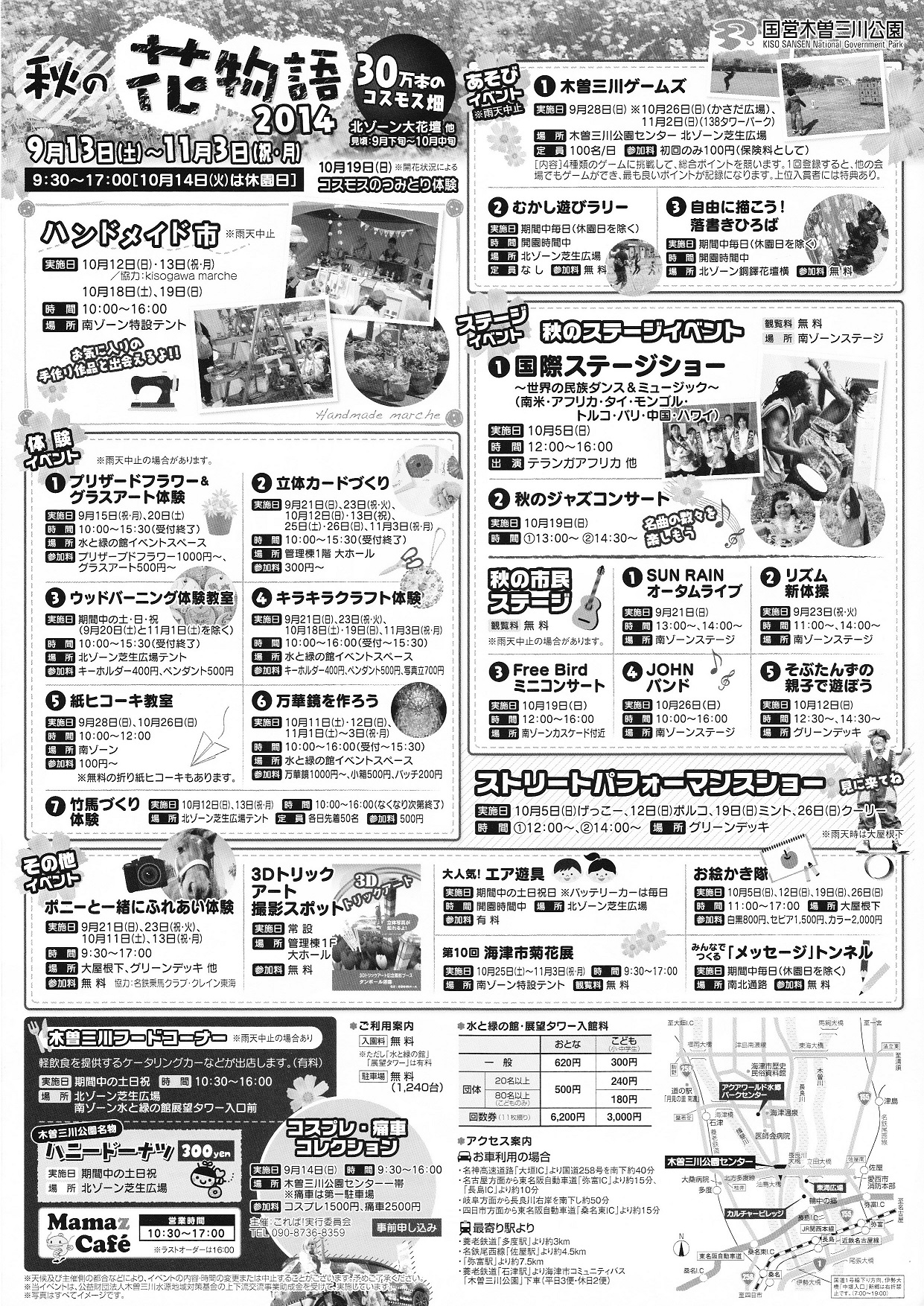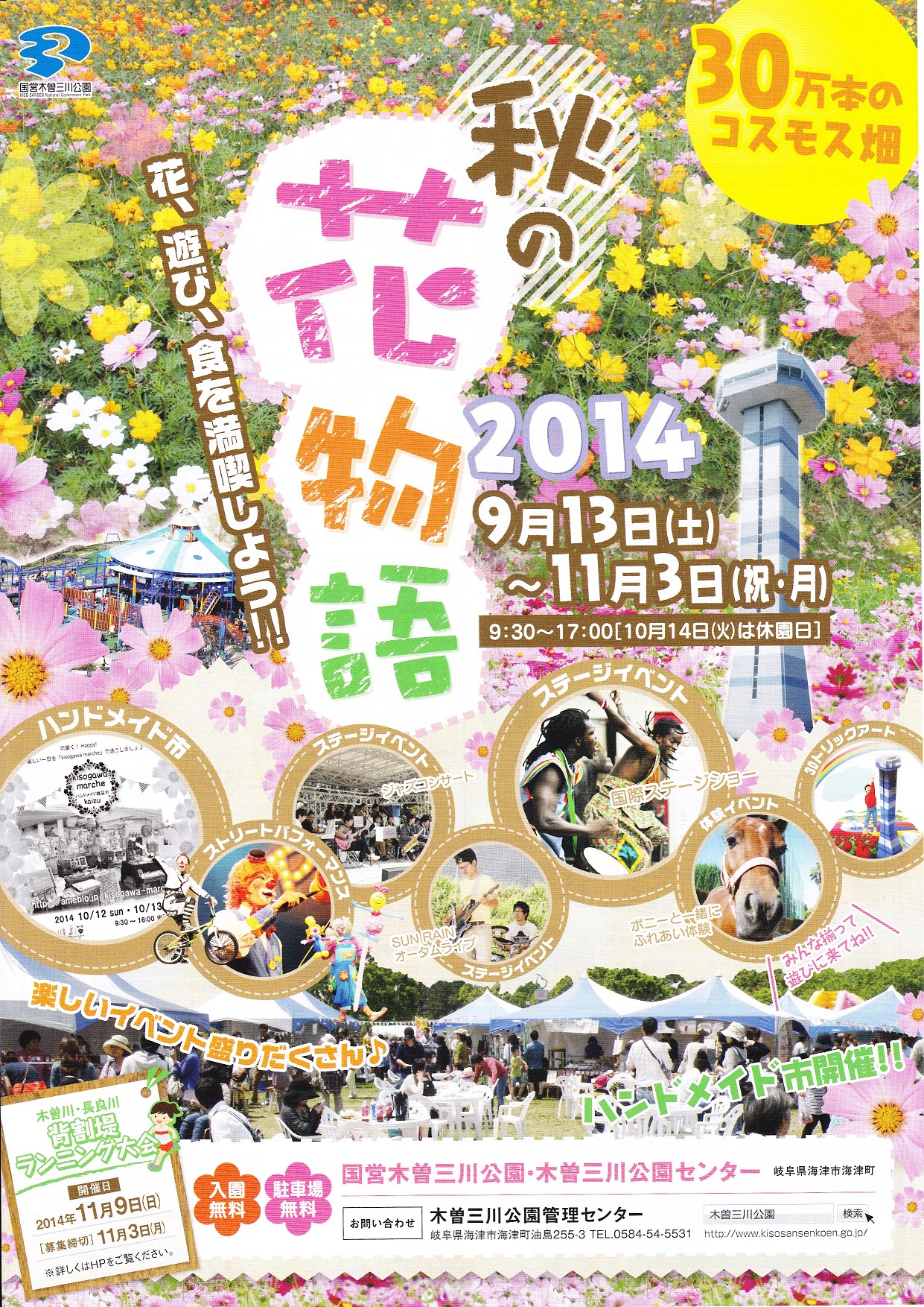 2014/09/12 Category : 演奏予定・お知らせ 10/5(日)木曽三川公園 国際ステージショーに出演します みなさんこんにちは! 10/5(日)に開かれる国際ステージショーのチラシをいただいたので掲載します。 9/13(日)~11/3(月祝)の期間中はいろんなイベントが開かれるようですね。 日差しもやわらいで行楽にうってつけの季節になってきました。 ぜひ会場でお会いできることを楽しみにしています。 と言ってもまだ詳しい出演時間が決定していないのですが(^^; こちらも決まりしだいお知らせします。 そのタイトル通り、いろーんな国の音楽やダンスが見られそうで私も今から楽しみです! もちろん私達は「中国」枠ですー こちらは5月の四日市まちかどコンサート以来、久々の翠三人での演奏となります。 中国な曲をお届けしますよ。新曲にも挑戦! 国際ステージショー~世界の民族ダンス&ミュージック~ 2014年 10月5日(日)12:00~16:00 場所:国営木曽三川公園 公園センター南ゾーンステージ 入場無料 http://www.kisosansenkoen.go.jp/ この木曽三川公園は愛知県、岐阜県、三重県をまたぐ巨大な公園でいくつかのエリアに分かれています。 今回は岐阜県海津市海津町にある「木曽三川公園センター」での演奏となります。 ちょっとややこしいのですが、ご注意くださいませ~ ではでは! PR http://deaimiyuki.ko-me.com/%E6%BC%94%E5%A5%8F%E4%BA%88%E5%AE%9A%E3%83%BB%E3%81%8A%E7%9F%A5%E3%82%89%E3%81%9B/10-5%EF%BC%88%E6%97%A5%EF%BC%89%E6%9C%A8%E6%9B%BD%E4%B8%89%E5%B7%9D%E5%85%AC%E5%9C%92%E3%80%80%E5%9B%BD%E9%9A%9B%E3%82%B9%E3%83%86%E3%83%BC%E3%82%B8%E3%82%B7%E3%83%A7%E3%83%BC%E3%81%AB%E5%87%BA%E6%BC%94%E3%81%97%E3%81%BE%E3%81%9910/5(日)木曽三川公園 国際ステージショーに出演します Comment0 Comment Comment Form お名前name タイトルtitle メールアドレスmail address URLurl コメントcomment パスワードpassword