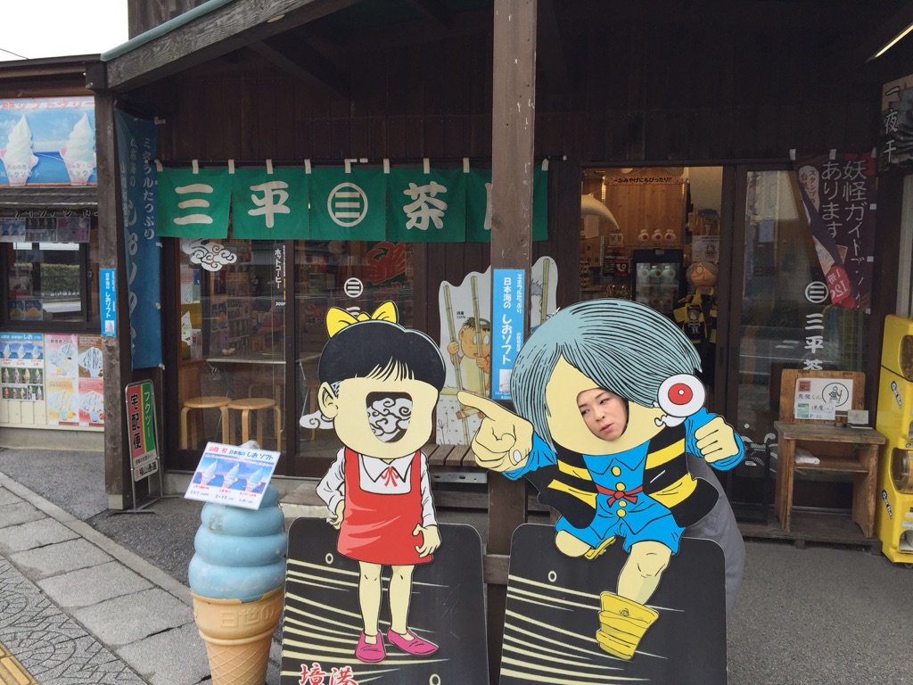 水木しげる記念館にも行きました。記念館の前には、献花台が作られていました。