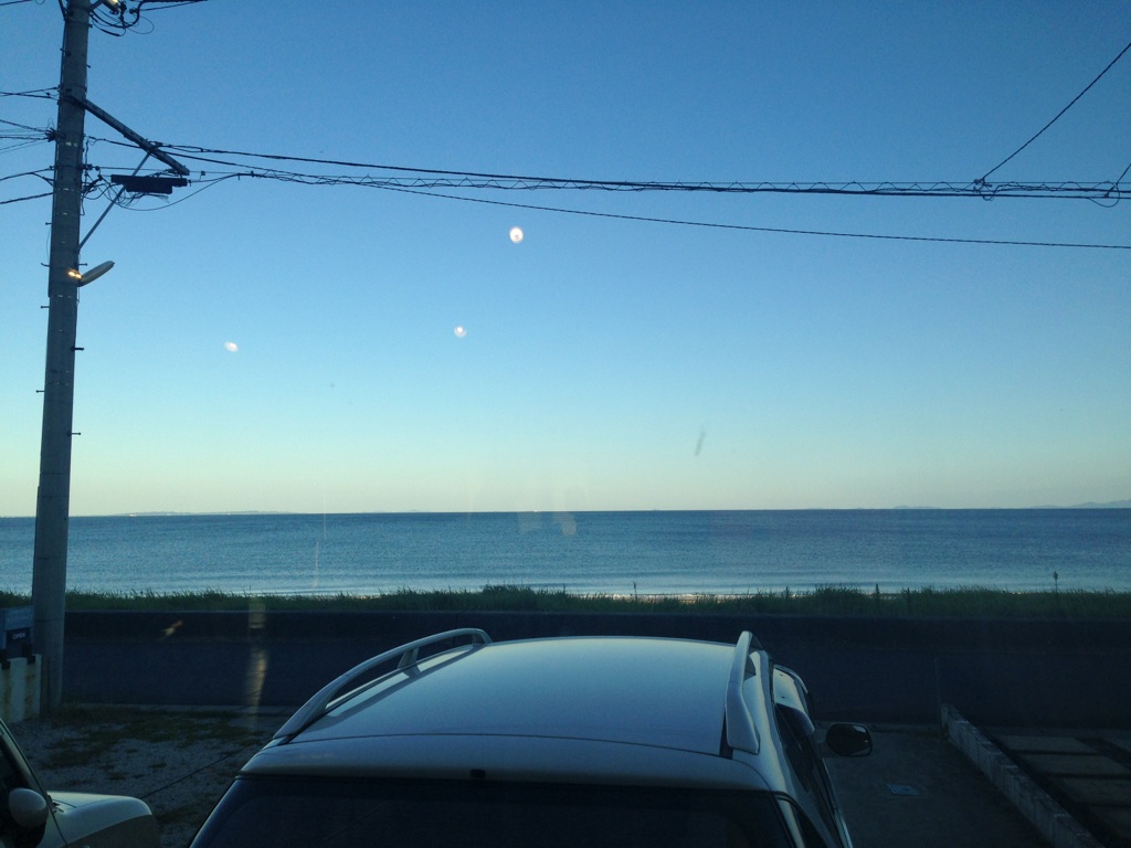 (お店からの夕方の風景です。もうほんとすぐそこが海なんです。最高の景色。)