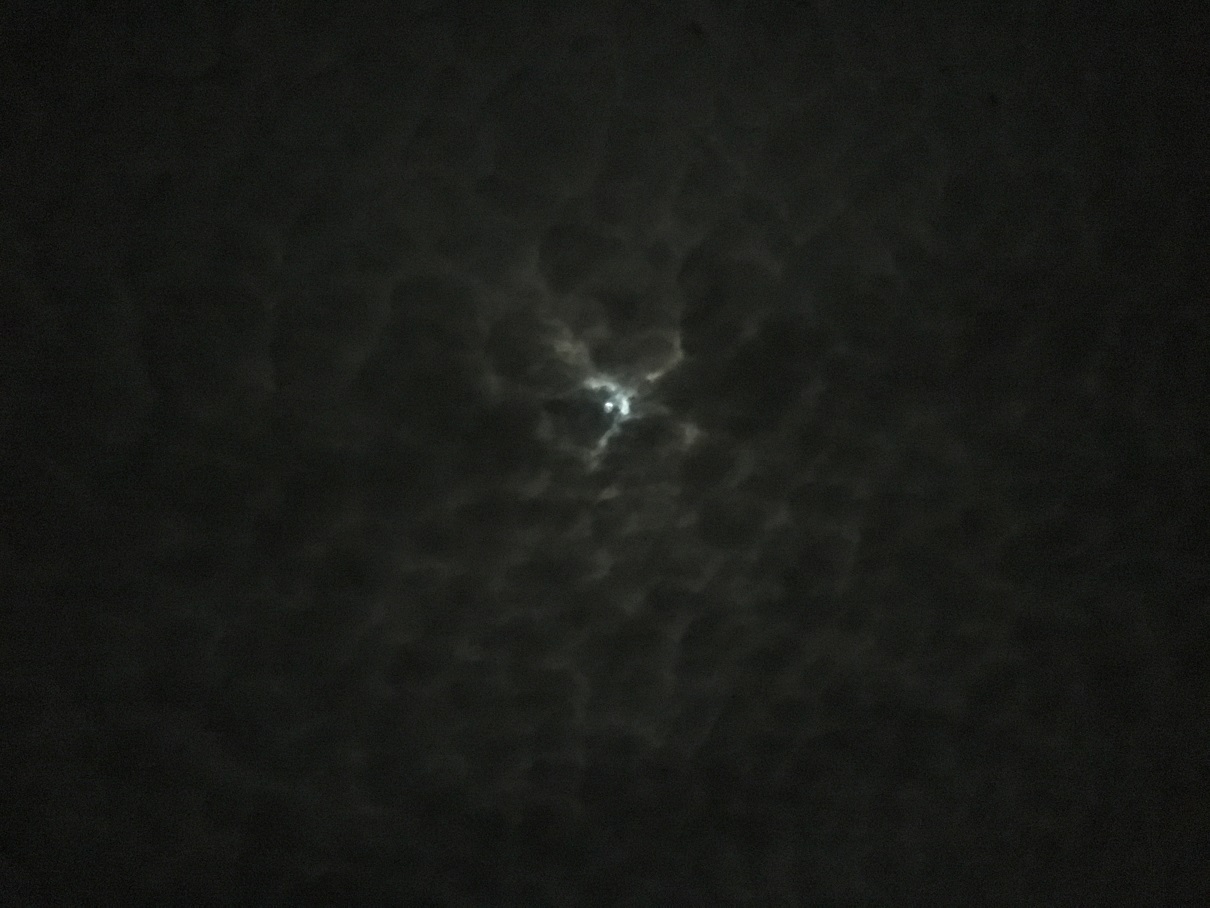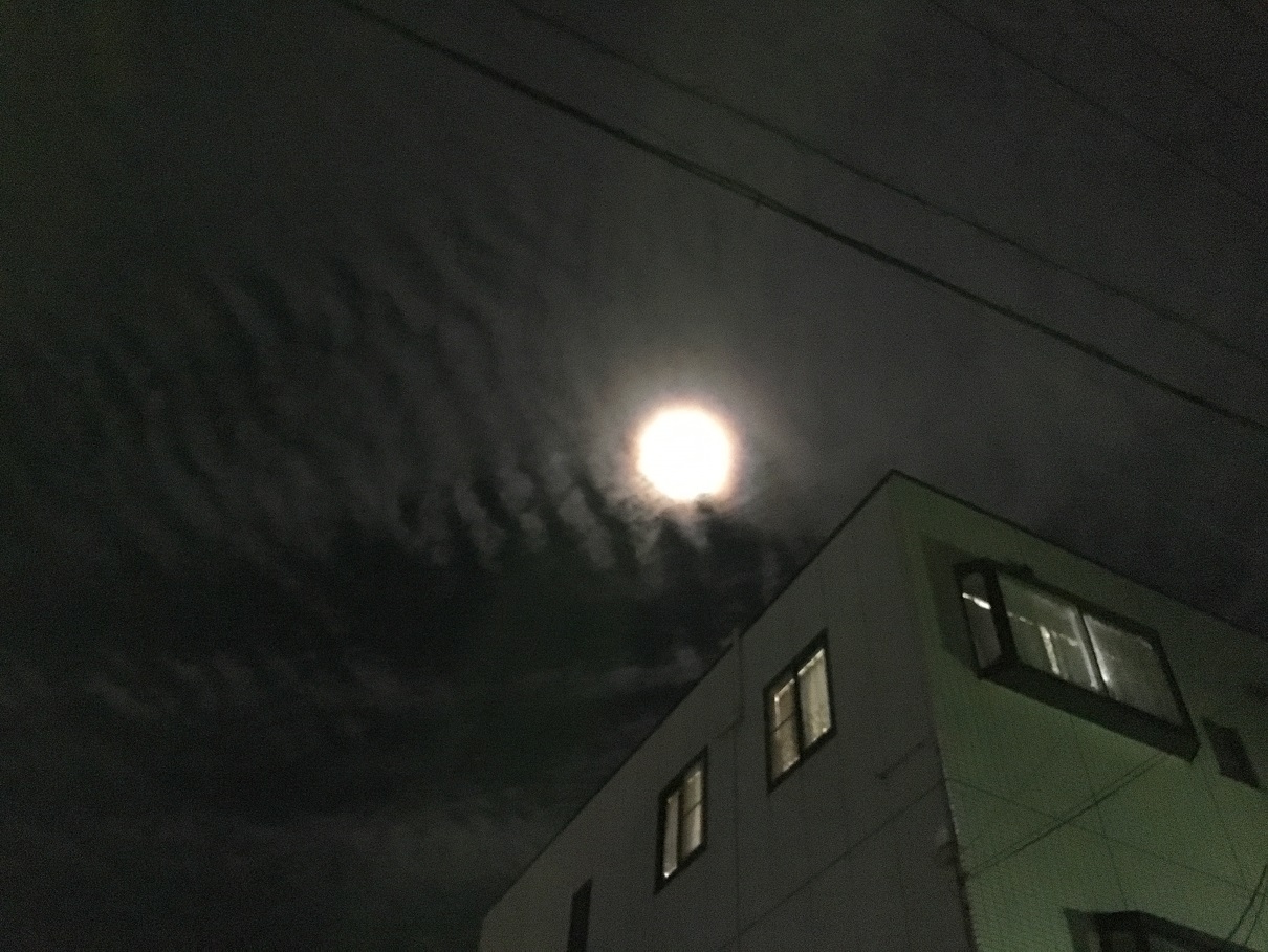 片づけが終わり、外に出ると、彩雲が輝く月が出ていました。